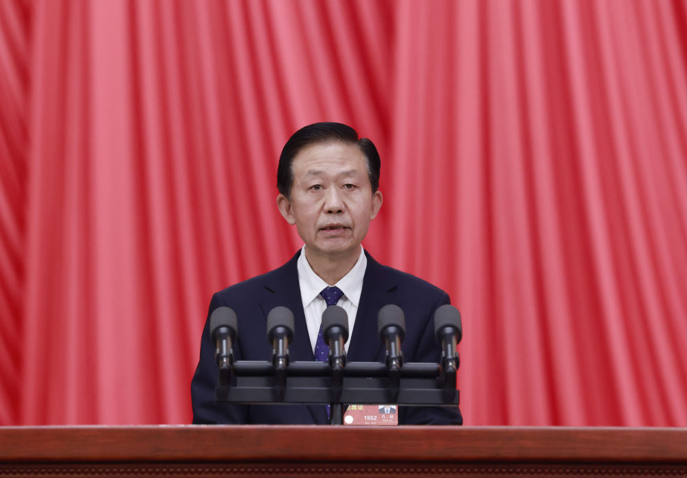 3月7日,十四届全国人大一次会议在北京人民大会堂举行第二次全体会议。最高人民法院院长周强作最高人民法院工作报告。新华社记者 李涛 摄